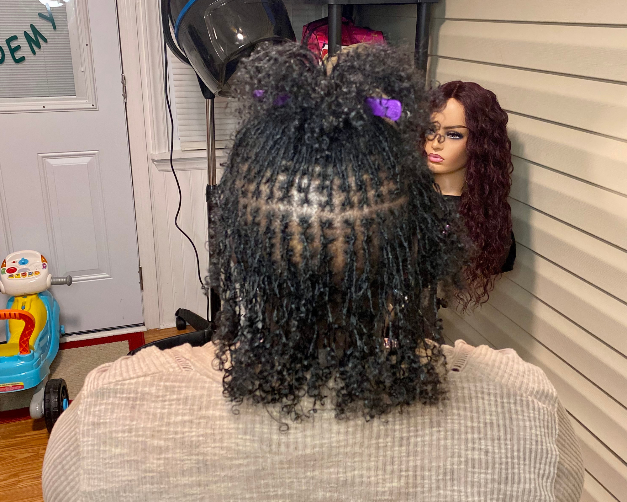 “OMG when I say I should have done this a long time ago, I should have done this a long time ago. While I was pregnant Korcia told me not to get my hair straighten anymore so my curls would form without having to do extra work. So I listened. I waited 4 months after having my baby because I wanted to make sure my edges didn’t disappear. When I say Korcia did it, she did it! She didn’t complain about the length of my hair or thickness, she took her time and parted each piece correctly and she DID NOT take a lot of breaks. She treated my hair as if it was the hair on her own head. Everyday since I have gotten them, at least 1 person has said “I love your hair.” Yes she is my friend and our policy is telling the truth. The proof is on my head honey. I’m glad I chose Korcia to start my journey.”